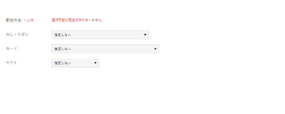 「選択可能な配送方法がありません」と表示されます。大変お手数をおかけしますが