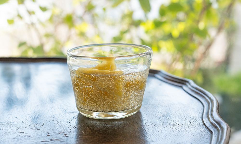 お酒を飲み終わったらウイスキーがしみ込んだ半解凍のパインをデザートとしてお楽しみいただけます。