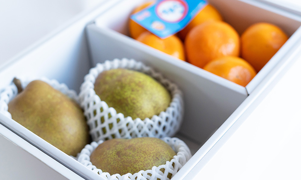 今の時期しか味わえない極上の甘みを持つラ・フランスと、手で皮を剥ける気軽さが魅力のみかん。